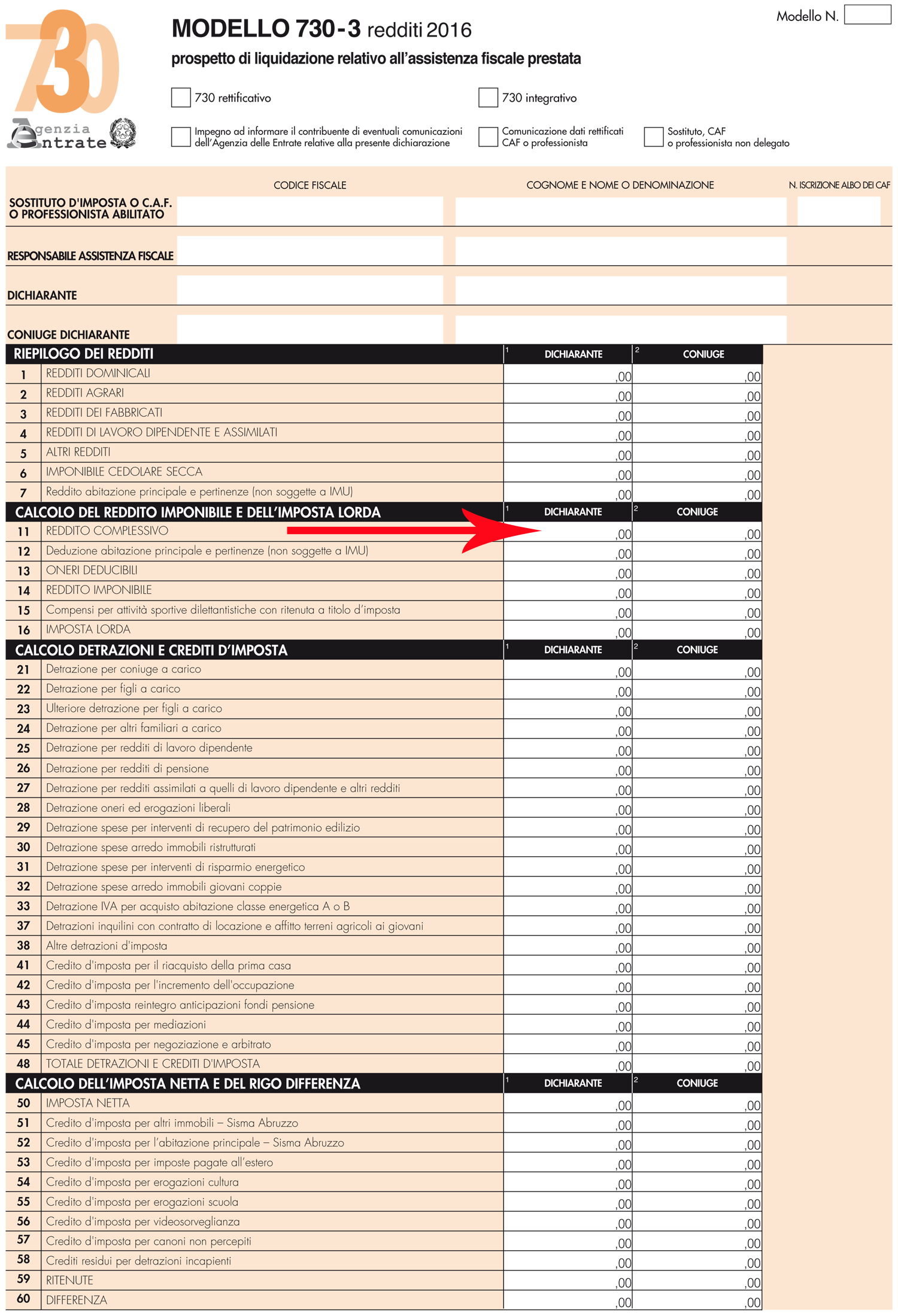 - Rigo 11 Reddito Complessivo sezione Riepilogo dei Redditi per chi ha presentato il 730;