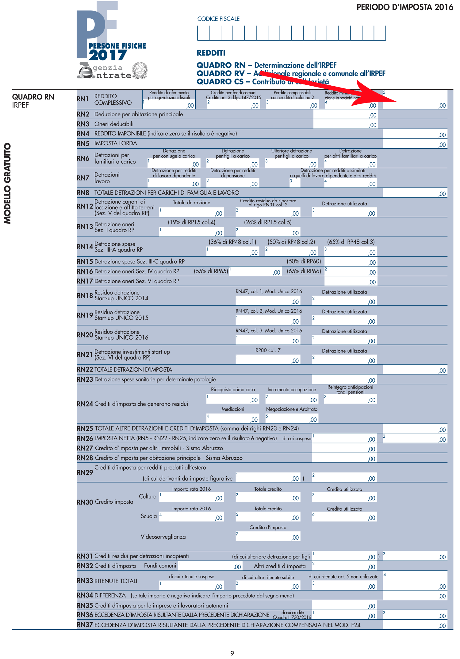 - Rigo RN1 colonna 5 per chi ha presentato il modello UNICO;