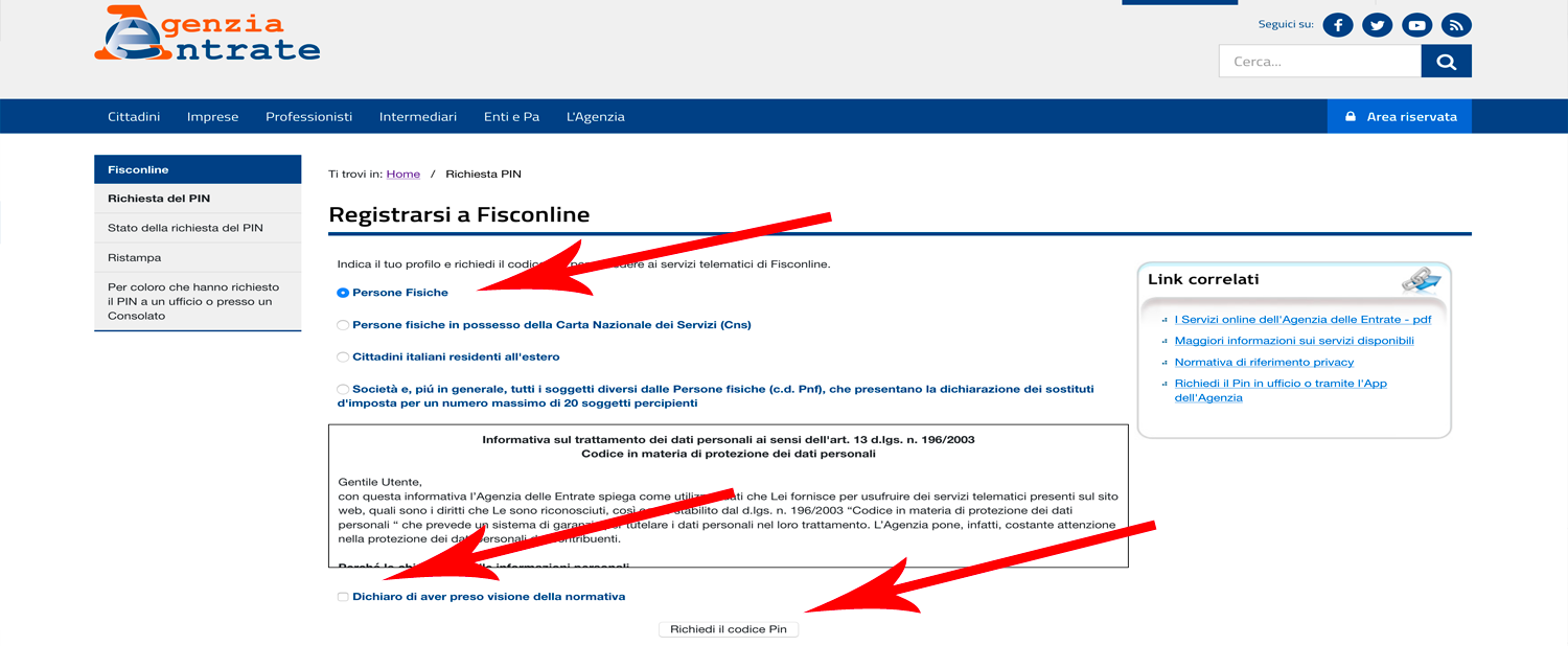 Come richiedere il PIN per poter accedere ai servizi telematici dell'Agenzia delle Entrate:
